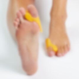 Hallux Valgus-skydd av mjuk Footcare gel med tre funktioner i samma produkt. Trio-skyddet kombinerar tryckavlastning och smärtlindring med en kompenserande tåspridare. Sitter stadigt på plats över två tår.