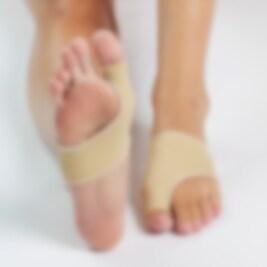 Elastiskt nylonskydd för tryckavlastning vid problem med Hallux Valgus. Mjukt, tunt och smidigt. Insydd kudde av silikongel som skyddar stortåleden mot tryck. Enkel av- och påtagning. Sitter stadigt på foten.