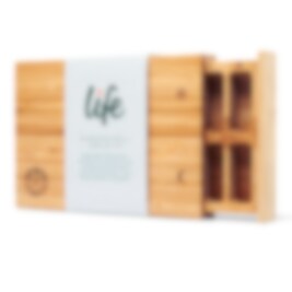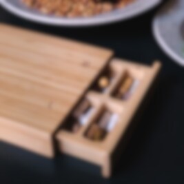 Snygg utdragbar doseringsask med två fack (morgon- och kväll) för varje veckodag. Tillverkad av hållbart material (bambu), med magnetlåsfunktion för förvaring av kosttillskott eller mediciner.