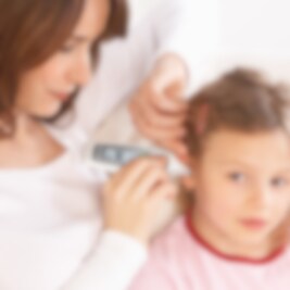 Mätning av kroppstemperatur inom några sekunder i örat eller på pannan. Mäter även yttemperatur på föremål och vätskor, t.ex napplaska.