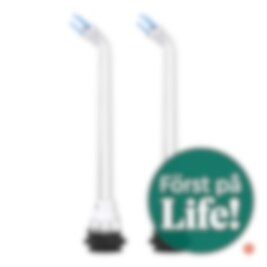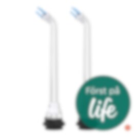 Munstycken för användning på implantat, kronor, broar, justering och liknande. Det är kliniskt bevisat att produkten är dubbelt så effektiv som tandtråd för tandköttet och tar bort upp till 99,99% av plack från behandlade områden. De tre tunna borstarna på munstycket når lätt runt svåra områden och tar effektivt bort plack runt hängslen, kronor, broar och andra områden som är särskilt utsatta för plackbildning.