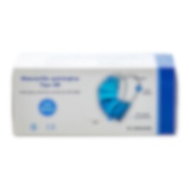 Munskydd av typ IIR, 3 lager med näsklämma och gummiband för bättre passform. CE märkt produkt. Bakteriefiltreringseffektivitet på 98%.