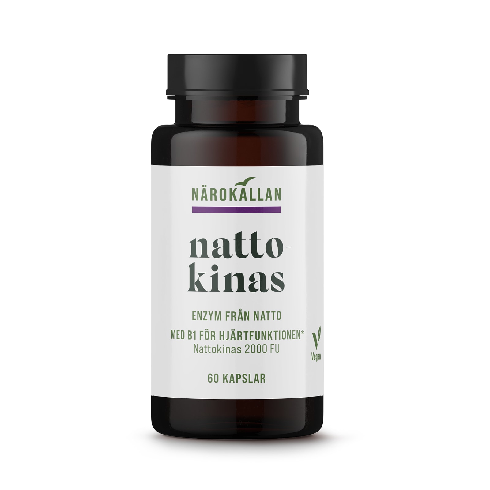 Nattokinas är ett enzym som kommer från natto vilket är ett traditionellt japanskt livsmedel som framställs genom fermentering av sojabönor.Med tiamin för hjärtfunktionen*. *Tiamin bidrar till normal hjärtfunktion.