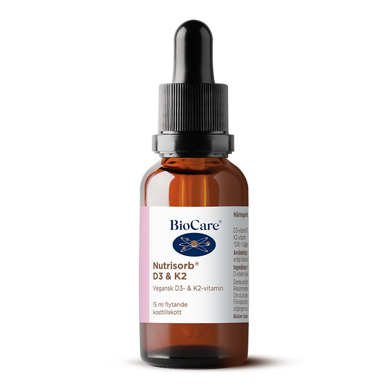 - Flytande vegan vitamin D3 och K2 för ben- och immunstöd
