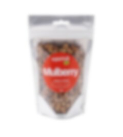 Superfruits mullbär är plockade direkt från träden och torkade i solen för att du skall kunna äta dem när som helst på året. De är också ekologiska och certifierade enligt EUs regelverk förordning 834/2007. Superfruit tycker att man skall äta en handfull vita mullbär om dagen för att det är gott och nyttigt. Mullbären är söta och nötiga till karaktären.