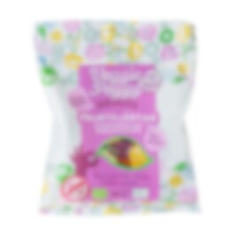 Godispåse med veganska frukthjärtan som är smaksatta och färgade med ekologiska frukter och bär. Fritt från gelatin.