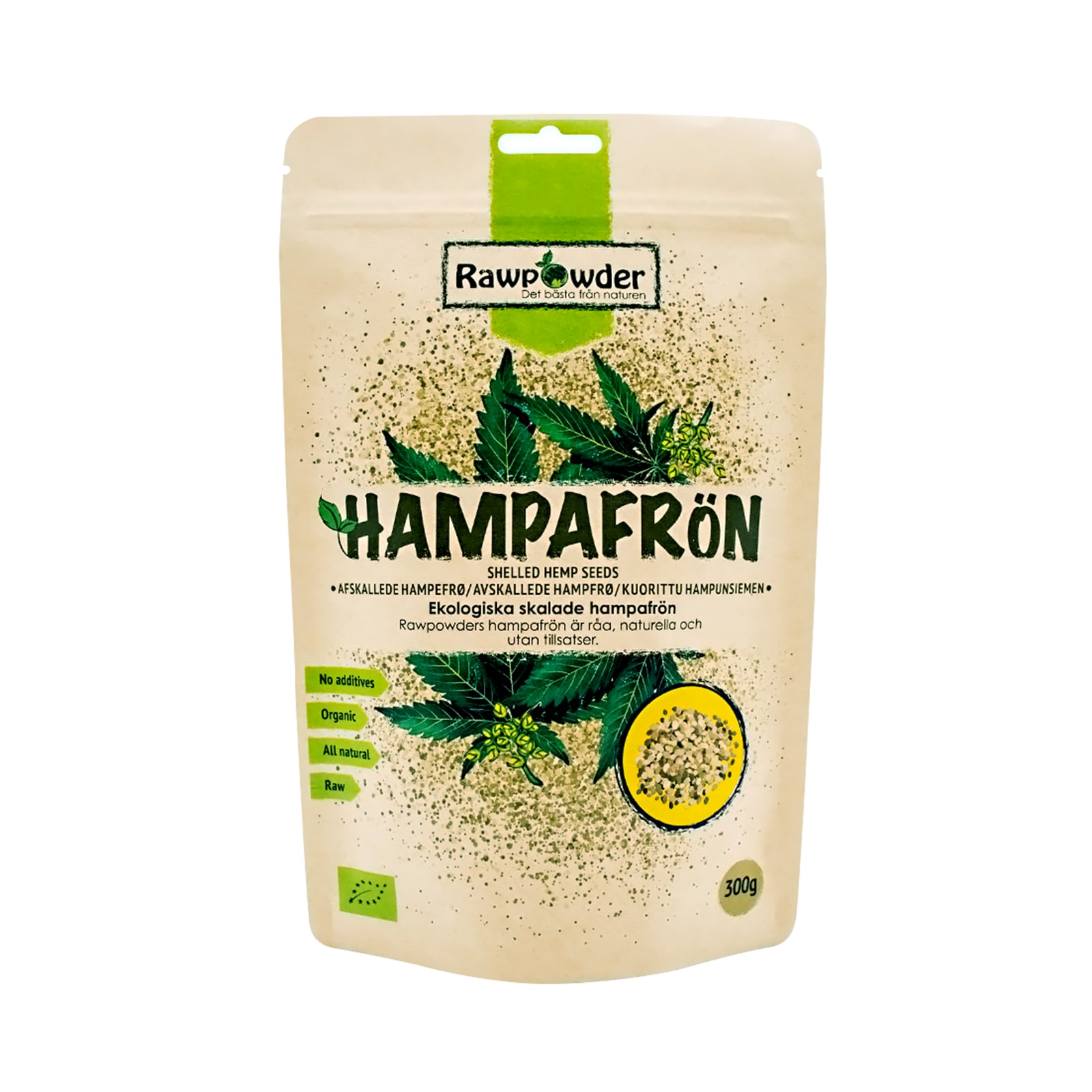 Rawpowders skalade hampafrön är råa, naturella och utan tillsatser. De har även en nötig och god smak. Kan ätas precis som de är eller tillsättas i matlagning och desserter.