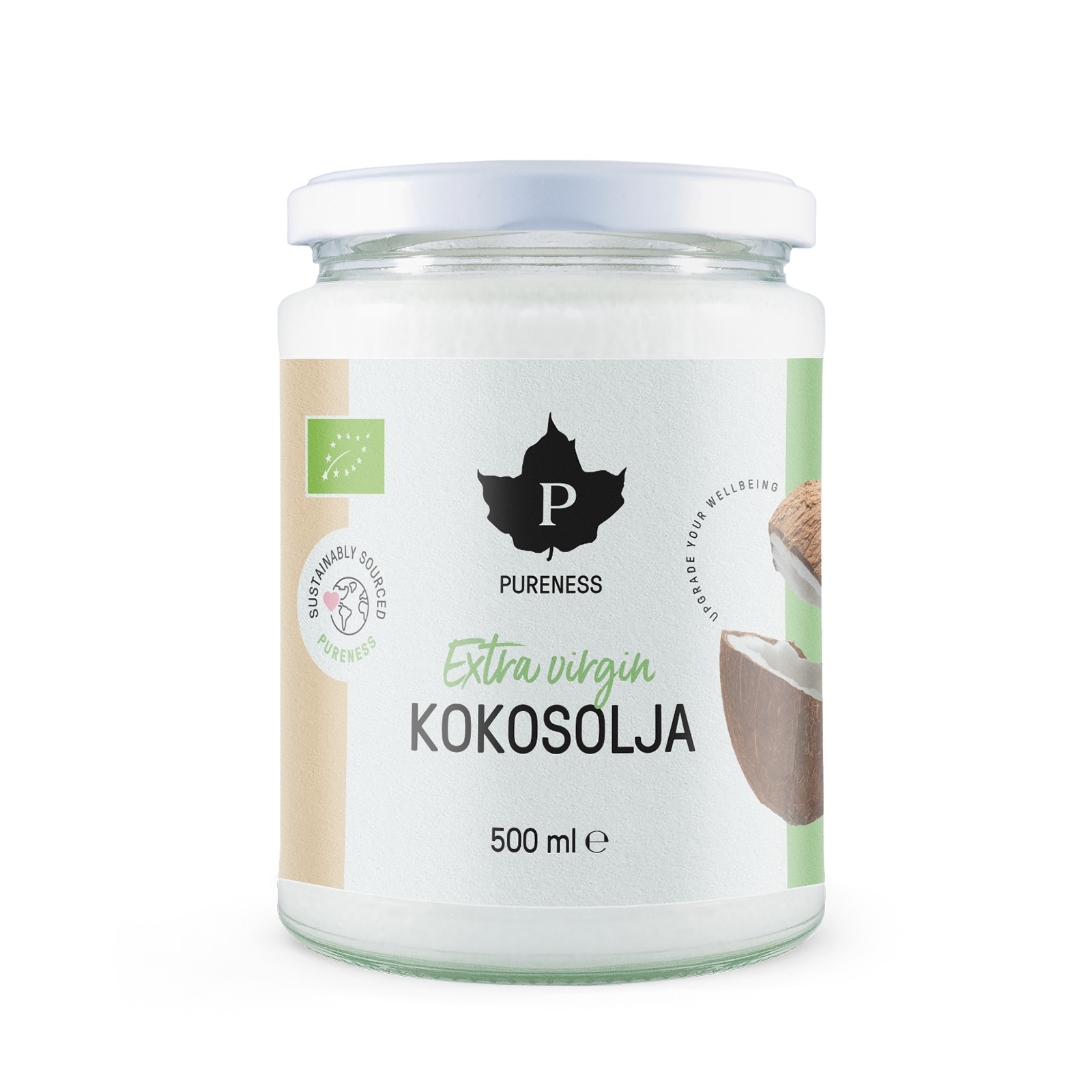 Kokosolja för både hälsa och hud! Kokosolja går att göra på flera sätt, och det går att använda till hur mycket som helst. Det är populärt inom smartfood, i matlagning och som hudvård. Vad du än vill använda kokosoljan till – se till att du har den bästa! Vad är kokosolja? Ta en mogen, ekologiskt odlad kokos från en kokospalm. Pressa det vita fruktköttet i en stor press. Ut kommer ekologisk kokosolja. Oljan smälter redan vid 25 grader Celsius. Så är det varmt ute är oljan genomskinlig och flytande. Är det rumstempererat eller svalare är den vitaktig och mer fast. Då kan den kallas kokosfett, men det är exakt samma produkt. Hur får man olja av högsta kvalitet? Det finns olika sätt att få oljan ur fruktköttet. Vår olja är kallpressad, vilket betyder att ingen värme har använts. Endast press, helt mekaniskt. Sån kokosolja kallas ”virgin oil” eller jungfruolja. Det finns också varmpressad och raffinerad olja, men inte hos oss på Pureness som värnar om näringsinnehållet. Den kallpressade kokosoljan har hanterats varsamt, så att alla de viktiga fettsyrorna och näringsämnena finns kvar. Är kokosolja nyttigt att äta? Kokosens mättade fetter anses bland annat vara ovanligt bra för sitt innehåll av Medium Chain Triglycerides (MCT). MCT ger en snabb energiomvandling, utan att det lagras som fett i kroppen. Det kan därför vara ett nyttigare alternativ än till exempel smör – och är särskilt populär inom LCHF. Kokosolja i köket Kokosolja går utmärkt att hetta upp och går därför att använda som stekfett och matolja i din matlagning och i bakning. Det har inga transfetter i sig och kan inte ens bilda transfetter vid upphettning. Eftersom vår olja som sagt är kallpressad, finns dessutom den goda doften och smaken kvar. Inom LCHF och biohacking är det populärt med en klick kokosfett i morgonkaffet – men prova då ännu hellre vår MCT-Olja! Kokosfett i badrumsskåpet Oljan går utmärkt att använda för skönhetsrutinerna. Kokosolja har vissa antiinflammatoriska, antivirala, antibakteriella egenskaper och kan fungera bra mot svamp. Dessutom kan den göra din hud len, och är skön att använda på kroppen efter duschen. En del använder kokosolja som hårinpackning, andra som sminkborttagning, vid rakning, för eksem eller som after sun. Att gurgla med kokosolja kan minska bakterierna i munnen och vara ett bra komplement till tandborstningen. Kokosfett till vad som helst Om inte allt detta var nog så kan man använda kokosolja för att smörja in läder, möbler eller stekpannor. Att ha som tändvätska eller smörja lås och gångjärn. Det finns som sagt nästan för mycket att säga om kokosolja! Vi nöjer oss så här, och uppmanar dig istället att testa själv, med den bästa kokosoljan som går att hitta.