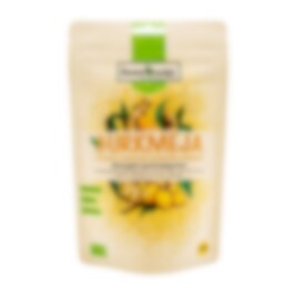 Rawpowders gurkmeja torkas och mals utan extrahering av de essentiella oljorna. Oljorna bevaras i pulvret. Pulvret har en fräsch doft och smak, är naturligt och utan tillsatser.