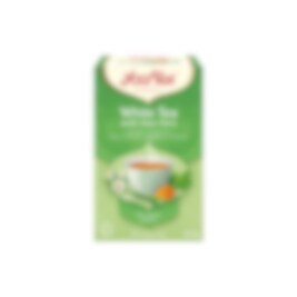 Yogi White Tea med Aloe Vera är en värmande blandning av noga utvalt vitt te med aloe vera och gurkmeja, kanel samt doftande blad av kamomillblomma.