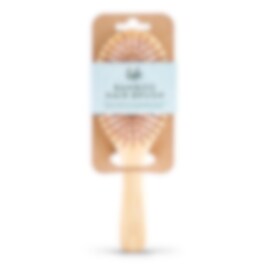 Denna borste reder ut och ger håret en fin glans. Borsten är tillverkad med omsorg om materialens ursprung och hållbarhet. Skaft och piggar är tillverkade av FSC-certifierad bambu med vattenbaserad lack. Gummidynan är tillverkad av helt återvinningsbart TPR-gummi.