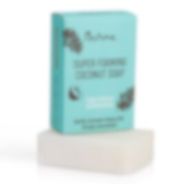 Super Foaming Coconut Soap är en handgjord kokosnötstvål som ger rikligt med skum och passar för rengöring av ansikte, kropp och händer. Rengör effektivt huden från smuts men skonsamt, lämnar huden ren och mjuk. A- och E-vitamin från kokosnötsoljan ger effektiv vård och skydd för huden samt påskyndar cellförnyelse. Passar för alla hudtyper, framförallt för de med doftallergi och känslig hy.