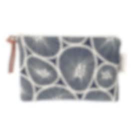 Yttertyg och foder i 100 % bomull, vävda av GOTS-certifierad bomull. Blixtlås i vislon. Lädertamp av naturgarvat läder.