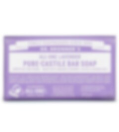 Dr Bronners Bar Soap Lavender är en mild och effektiv vegansk, fast tvål av ekolgiska ingredienser och naturlig mild doft av Lavendel från ekologiska eteriska oljor.
